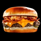 Dois hambúrgueres artesanais (150g cada) com queijo cheddar e bacon, servidos em pão brioche com maionese cremosa.