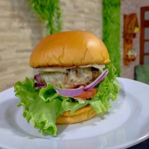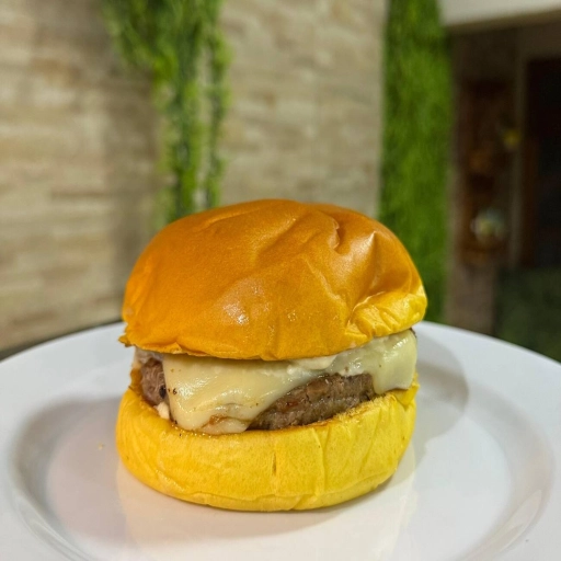 Hambúrguer artesanal com queijo mussarela, maionese, alface fresca, tomate suculento e cebola roxa crocante, tudo em um... Ver completo