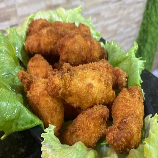 Deliciosas tiras de frango empanadas, crocantes e suculentas, perfeitas para compartilhar.