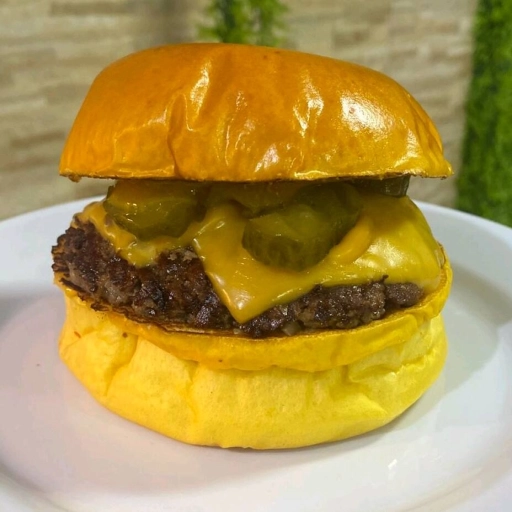 Um hambúrguer artesanal suculento (150g) com queijo mussarela derretido, servido em pão brioche macio, acompanhado de ... Ver completo
